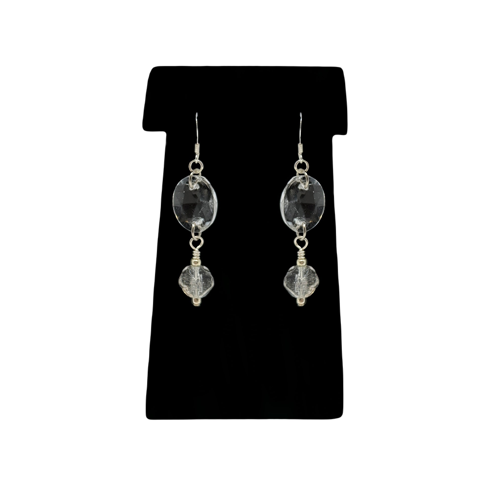 A collection of vintage faceted chandelier crystals comprise these wonderful and one-of-a-kind earrings. Measure approximately 0.5" wide and hang about 1.75".