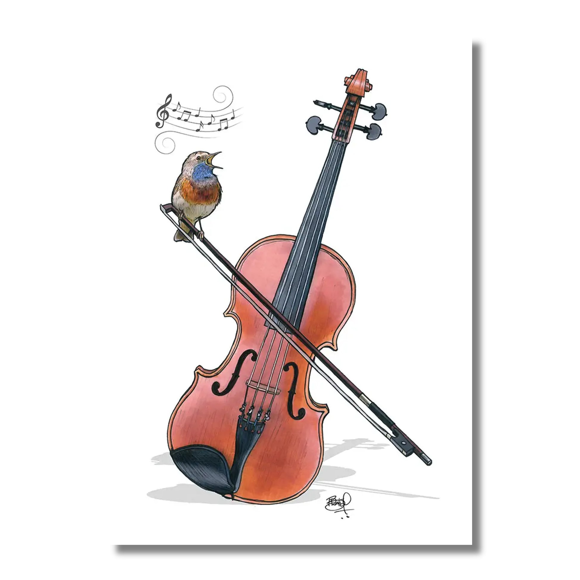 A sweet little bird tweets out a tune atop a violin on this elegantly illustrated greeting card. Measures approximately 5” x 7”, designed by Shawn Braley Illustration.