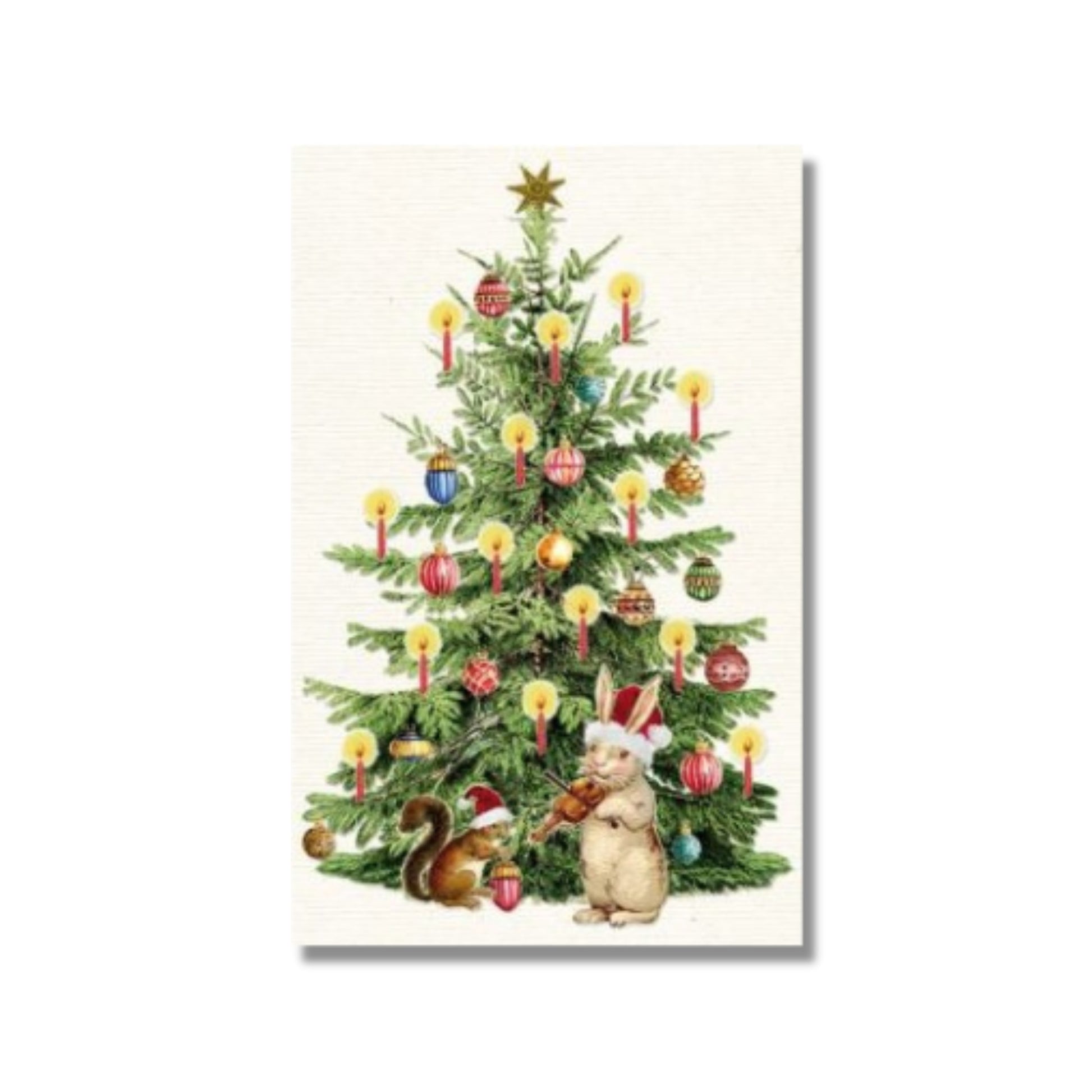 An adorable little rabbit plays a holiday tune on his violin on this wonderful and petite Christmas card. Measures approximately 3.25" x 5.25".
