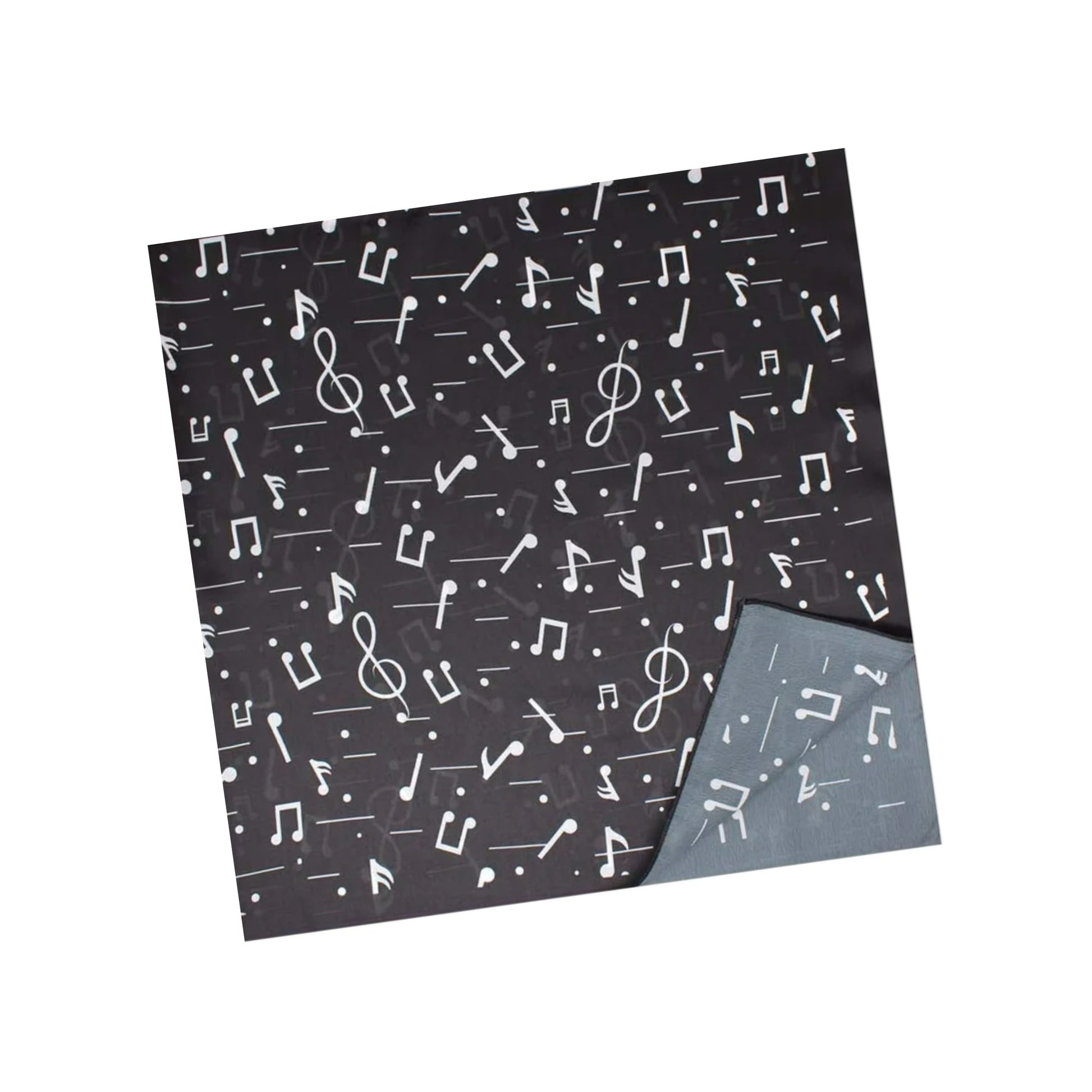 A myriad of modern music notes are scattered across this elegant silk-feel scarf, perfect for adding a musical motif to any outfit. Measures approximately 35" square, made from 100% polyester.