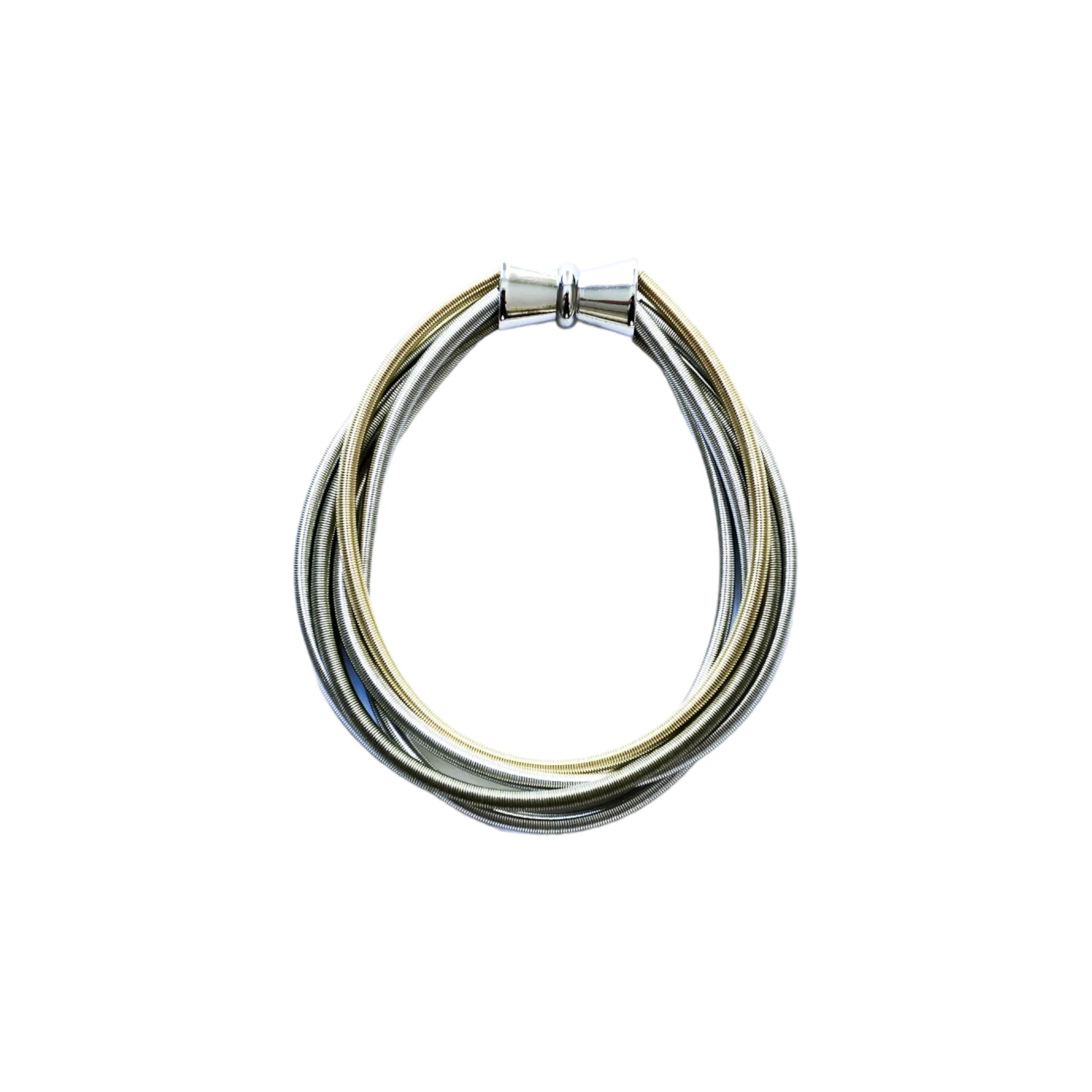 Piano Wire 5-Strand Bracelet, Gold & Silver