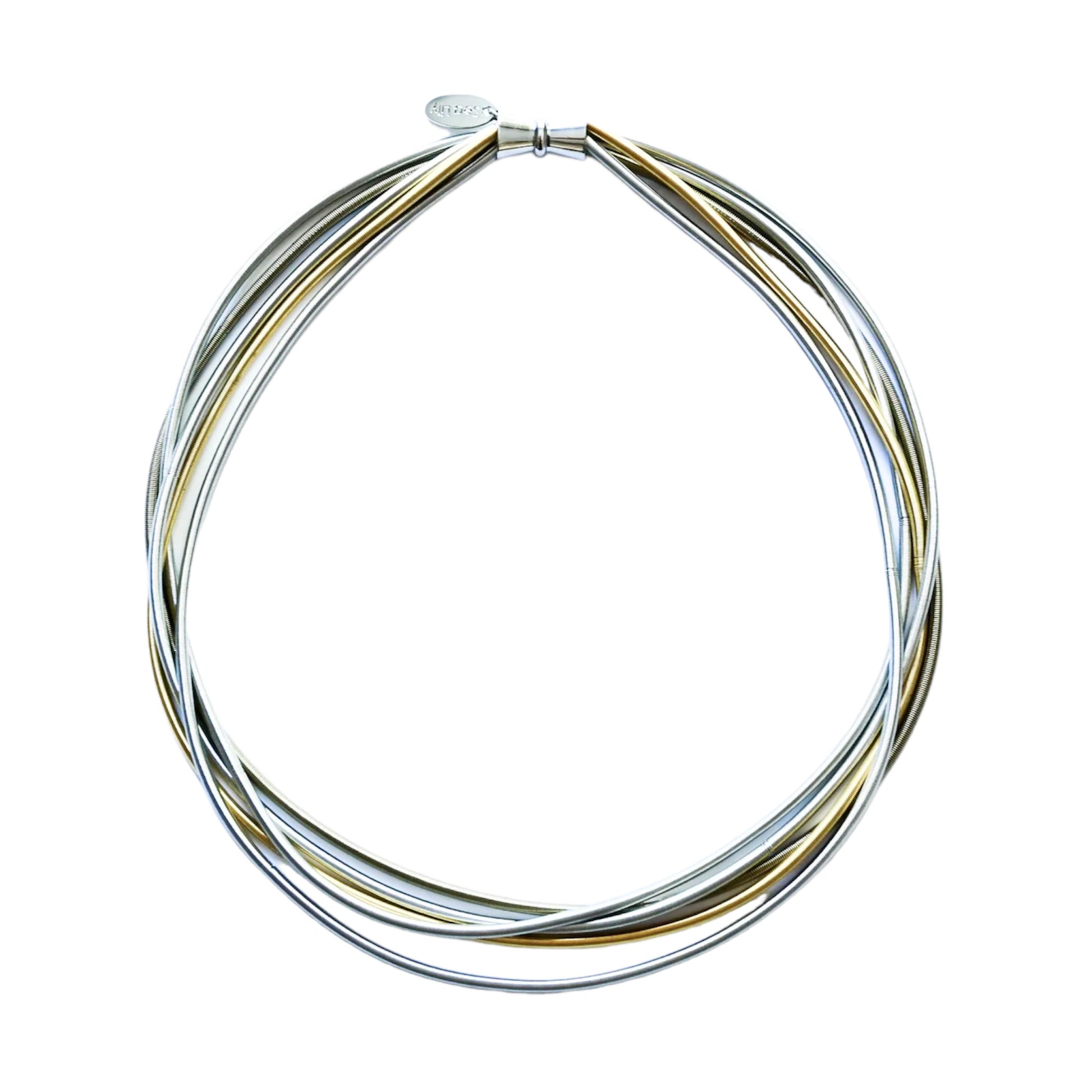 Piano Wire 5-Strand Necklace, Gold & Silver