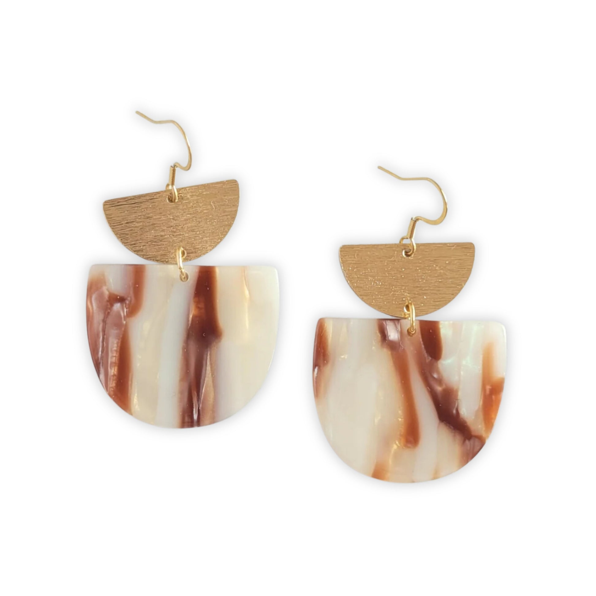With shimmering neutral tones and a brilliant gold scoop, these bold earrings will amplify any outfit. Made from lightweight and durable plant-based acrylic with a gold-plated brushed brass charm and 18K gold-plated stainless-steel French wires.